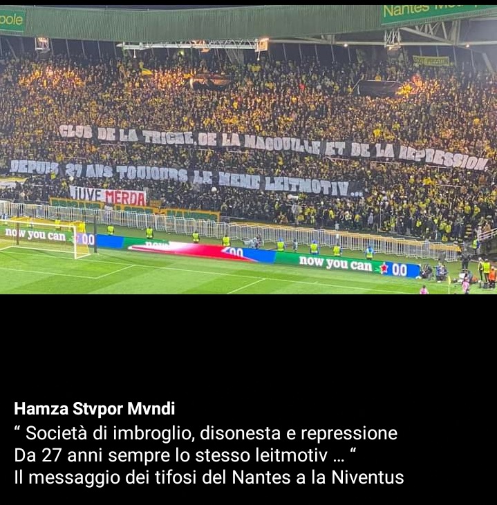 I tifosi del Nantes hanno voluto fare uno striscione da esporre in curva nella partita di Europa League contro la Juventus.