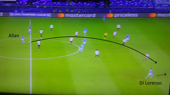 Più ancora che per il contributo difensivo, Allan ha fatto la differenza in Napoli-Genk per il suo gioco sul lungo. I suoi lanci e le sue verticalizzazione hanno infatti punito gli scompensi di una linea belga non sempre irreprensibile.