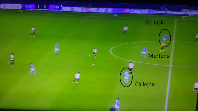 Mertens ha giocato come seconda punta nel Napoli che ha vinto contro il Genk. I partenopei si sono schierati con un 442 in cui le ali, Callejon e Zielinski, erano molto dentro al campo. Con Milik più avanzato, era soprattutto Mertens che svariava, venendo incontro e defilandosi.