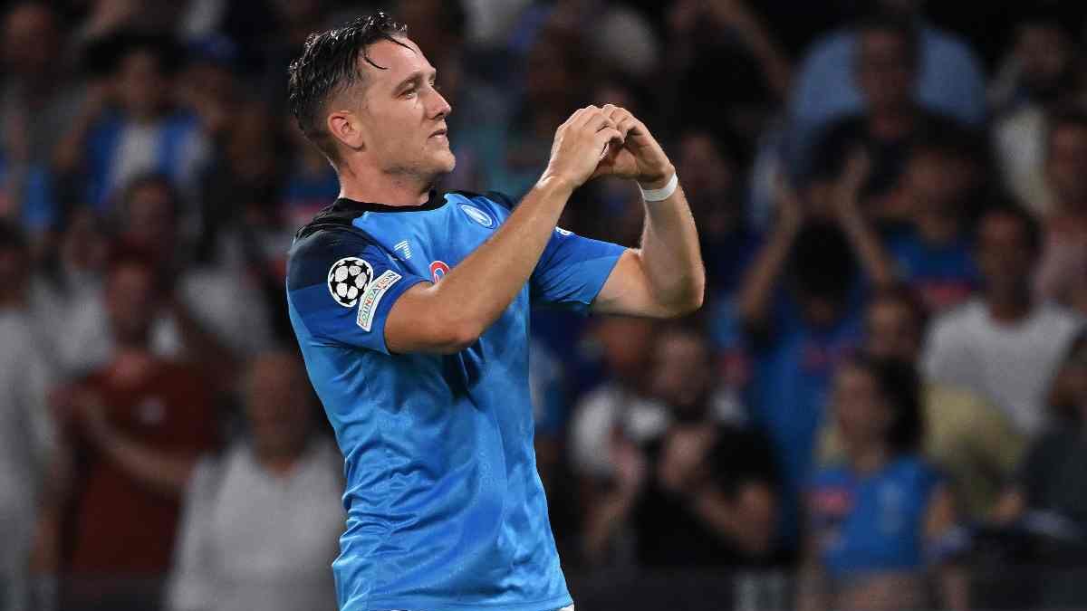 4′ RIGORE NAPOLI – Azione travolgente di Kvaratskhelia sulla sinistra. Palla servita al limite a Zielinski che piazza all’angolino ma Handerson colpisce con la mano e l’arbitro fischia il rigore.