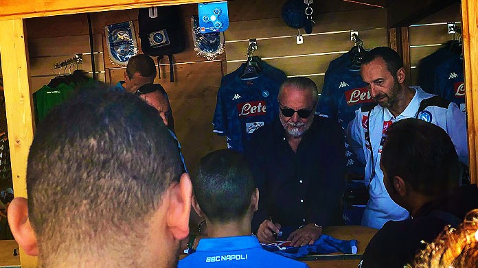 Aurelio De Laurentiis ha incontrato i tifosi del Napoli nel ritiro di Dimaro e si è intrattenuto con loro per un paio di minuti dentro lo store del club azzurro.Successivamente è entrato nella tribuna riservata ai sostenitori, che hanno chiesto di nuovo l’arrivo di un top player. «Compraci James», il coro intonato dai tifosi presenti che hanno trovato la risposta di De Laurentiis.