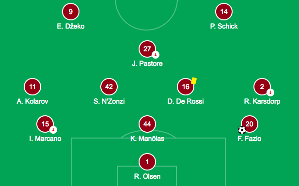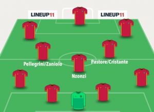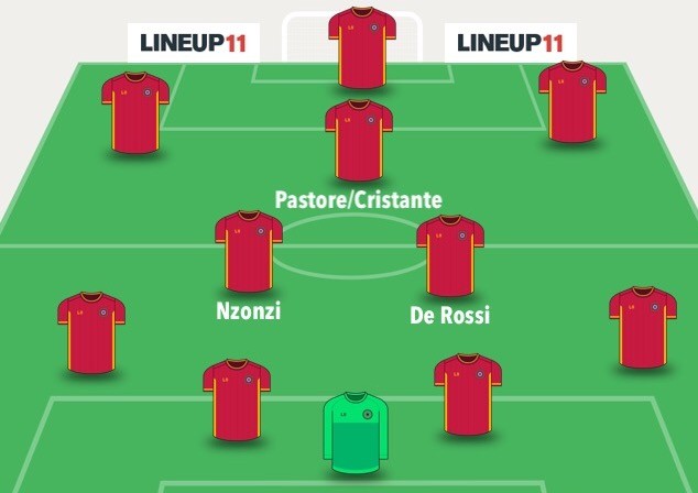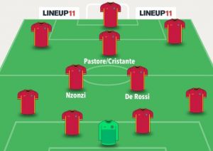 Il piano di Di Francesco è quello di tornare al suo amato 4-3-3 con De Rossi in cabina di regia con Nzonzi nel ruolo di mezzala. Un sistema che permetterebbe la presenza simultanea dei due giocatori valorizzando anche il terzo centrocampista, che in una formazione ideale dovrebbe essere uno tra Pastore e Cristante. Perché se è vero che i moduli sono fluidi, con la coppia Nzonzi-De Rossi il 4-3-3 potrebbe facilmente trasformarsi in un 4-2-3-1 che permetterebbe all’altra mezzala di spingersi nel ruolo di trequartista incursore alle spalle della punta.