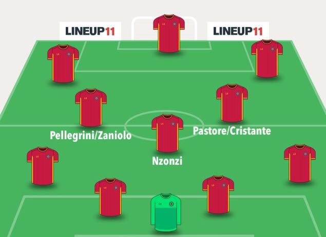 La seconda soluzione prevede l’alternanza tra De Rossi e Nzonzi nel ruolo di mediano davanti alla difesa. Questo permetterebbe a Di Francesco di far ruotare, nel ruolo di mezzala del 4-3-3, gli altri centrocampisti in rosa. I vari Pellegrini, Zaniolo e Coric che nonostante la giovane età reclamano spazio.
