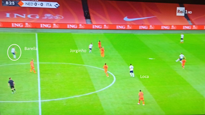 Oltre alla qualità del palleggio arretrato, va sottolineata la facilità con cui l’Italia trovava Immobile. Quando si recuperava palla, c’era modo di servirlo immediatamente in profondità, consentendogli così di puntare Veltman in campo aperto (la linea difensiva dell’Olanda è stata spesso bucata). Alla punta della Lazio è mancato solo il gol, ma ha fatto bene sia quando ha attaccato gli spazi, sia nei frangenti in cui è venuto incontro giocando spalle alla porta.