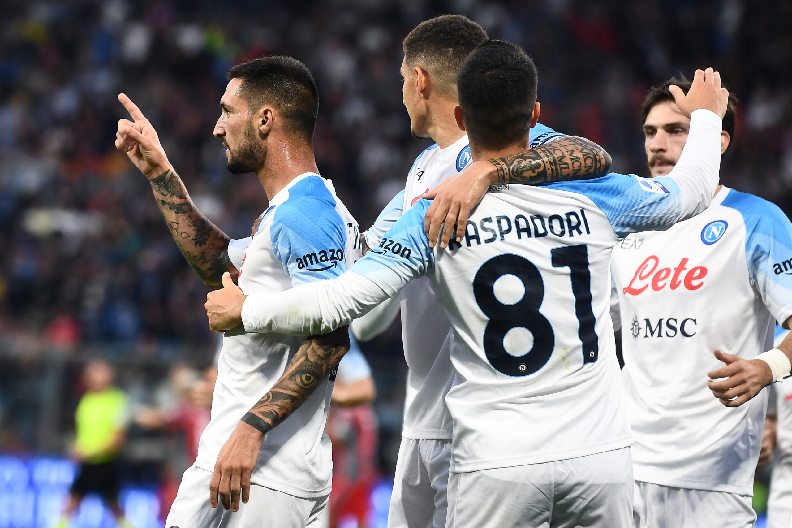 NAPOLI (4-3-3): Meret 6; Di Lorenzo 6.5, Rrahmani 7 (82′ Ostigard SV), Kim 6.5, Mario Rui 6.5 (82′ Olivera 6.5); Anguissa 5.5, Lobotka 6, Ndombélé 5.5 (57′ Simeone 7); Politano 6.5 (73′ Lozano 6.5), Raspadori 6 (73′ Zielinski 6), Kvaratskhelia 7. All. Spalletti 7