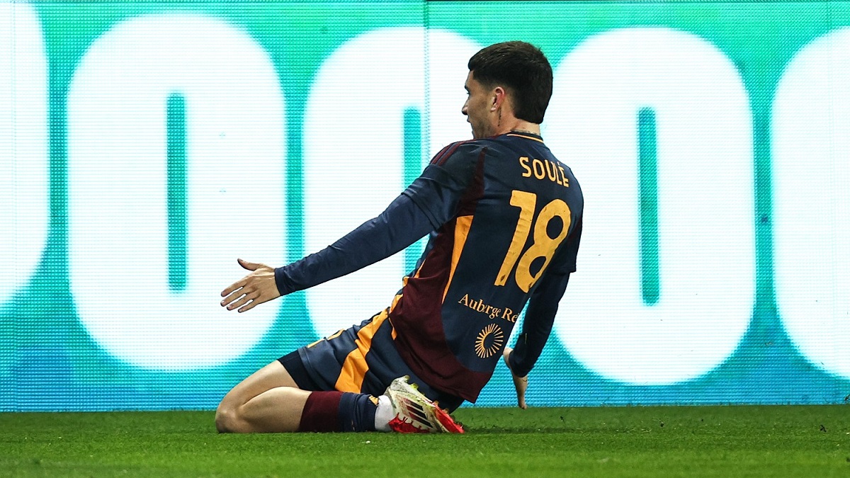 ROMA (4-3-1-2): Svilar 6; Celik 6.5, Mancini 6.5, Ndicka 7, Angeliño 7; Pellegrini 6, Cristante 6, Koné 6.5; Soulé 7.5; Shomurodov 6, Dovbyk 5.5. Subentrati: Rensch sv, Gourna Douath 6, Baldanzi 6, Pisilli 5.5, El Shaarawy sv. Allenatore: Claudio Ranieri