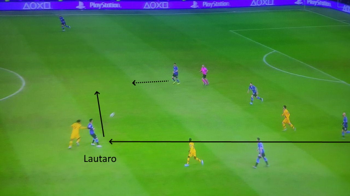 Queste sue abilità nello smarcamento non si limitano solo alla fase di finalizzazione. Il sudamericano non pesta mai i piedi a nessuno, anzi sa rendersi complementare al massimo con i compagni, generando ottimamente spazi per la squadra. Basti pensare alla sua intesa con Lukaku: legge sempre in anticipo il movimento del compagno, come per esempio quando gli porta via l’uomo o va a raccogliere la sua sponda nello spazio che il belga gli ha precedentemente creato.