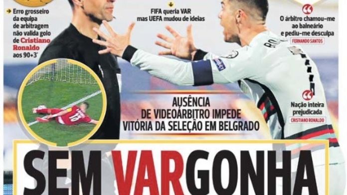 Lapidaria la prima pagina di oggi di A Bola, dal titolo “SEM VARGONHA“, “SENZA VARgogna”. Si polemizza sulla mancanza di Var e Goal Line Technology nelle partite di qualificazione ai Mondiali.