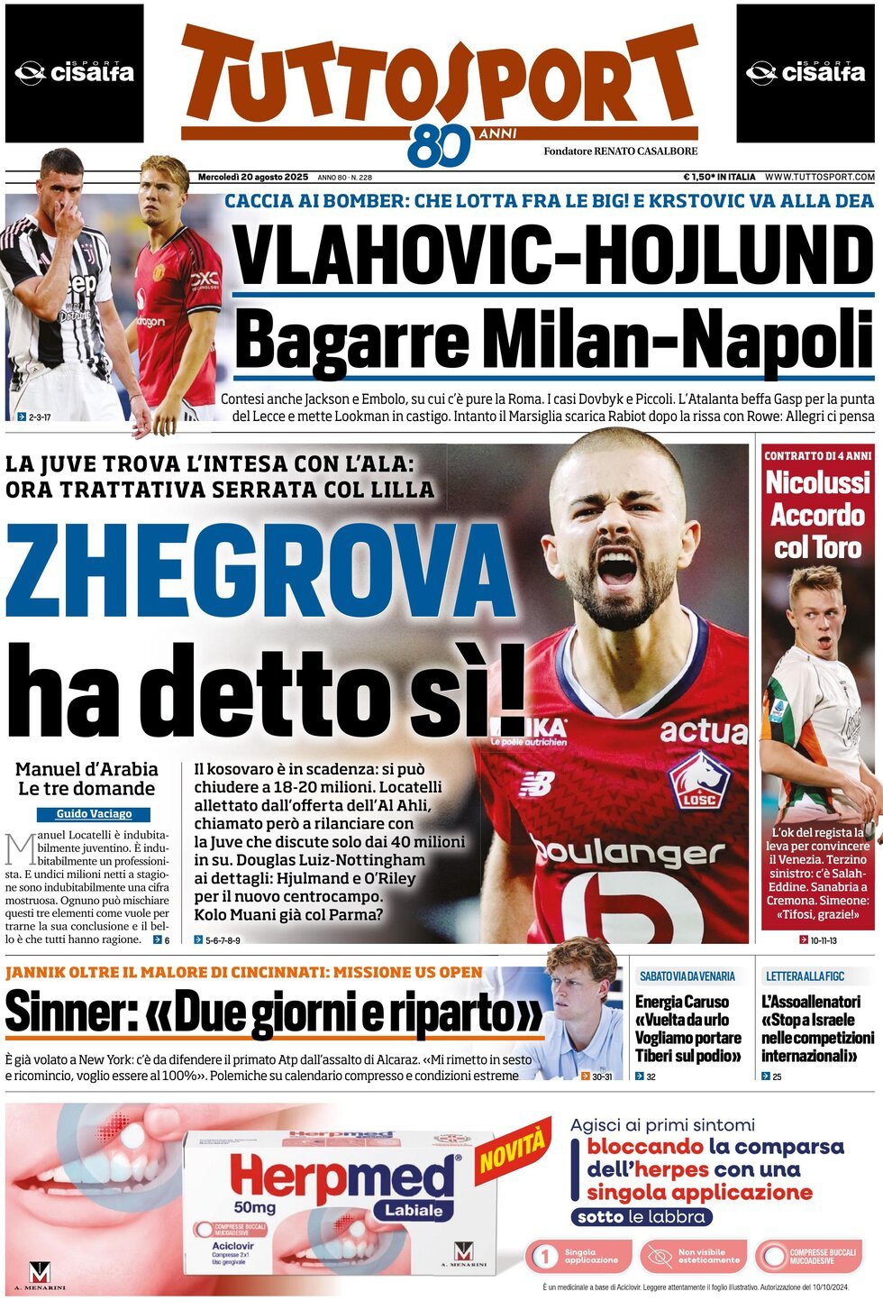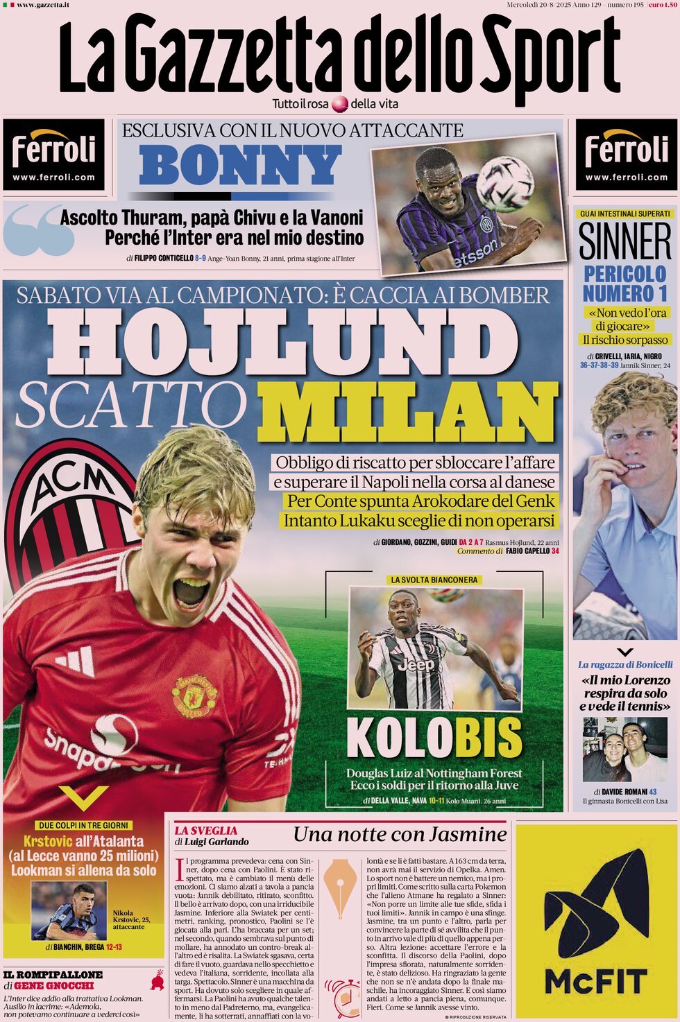 Le prime pagine sportive nazionali – 20 agosto 2025