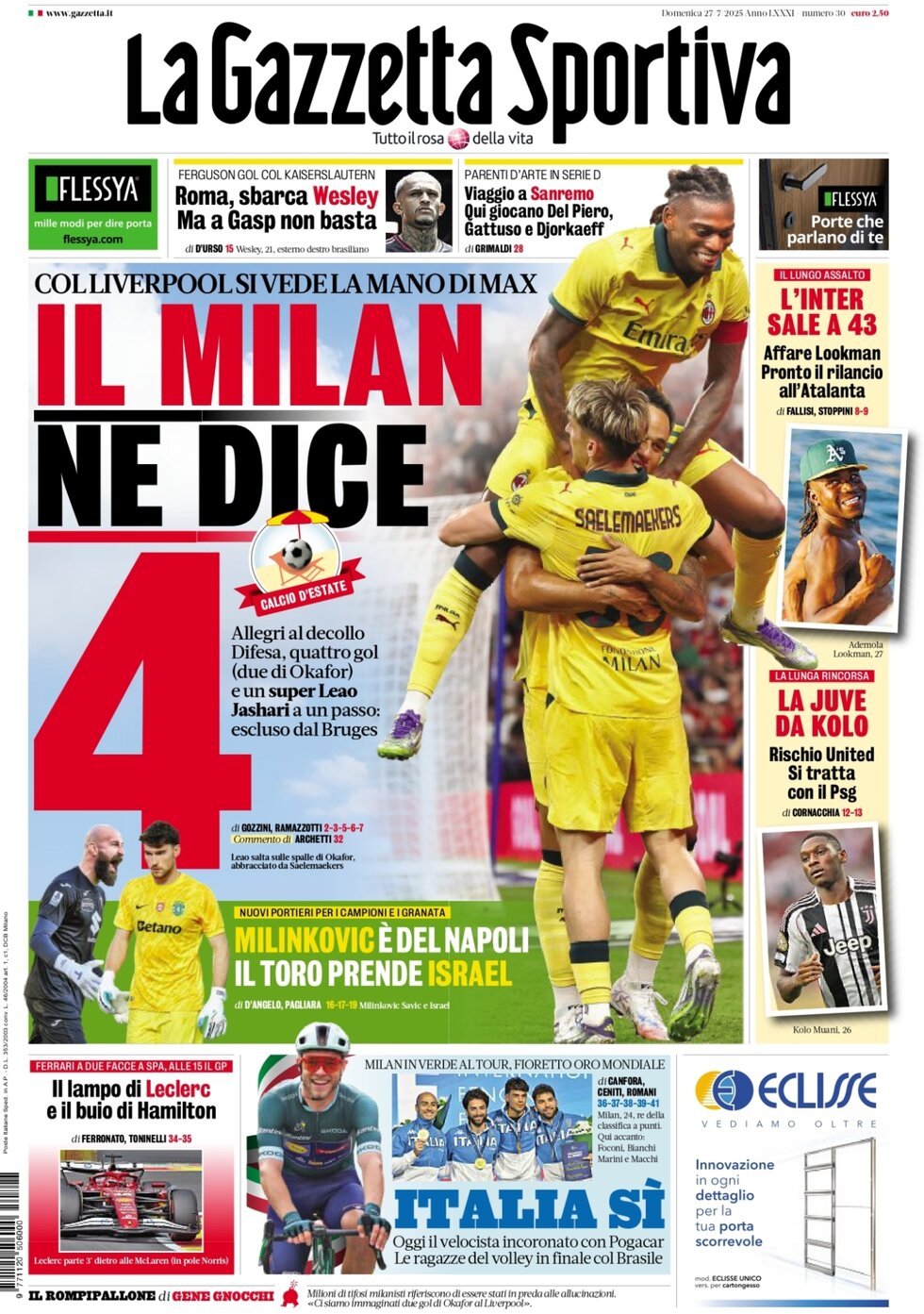 Le prime pagine dei quotidiani sportivi di oggi in edicola: Tuttosport, Corriere dello Sport e La Gazzetta dello Sport. I dettagli