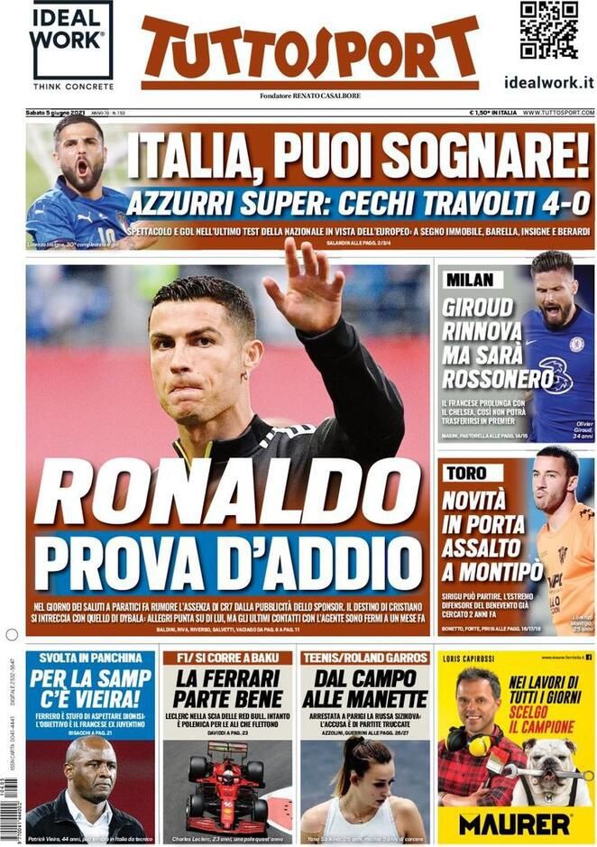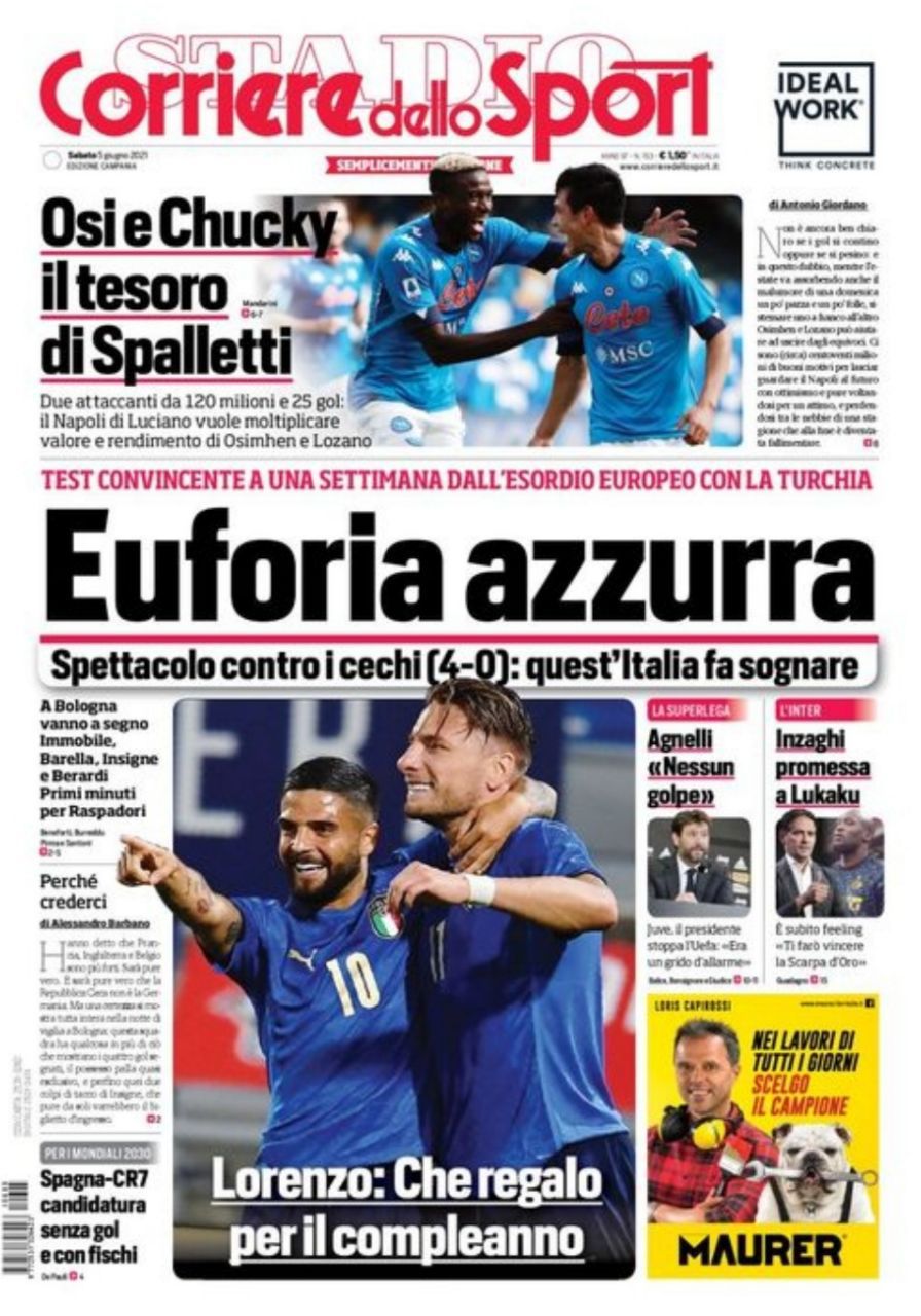 Le Prime Pagine dei Quotidiani Sportivi di oggi – 5 giugno