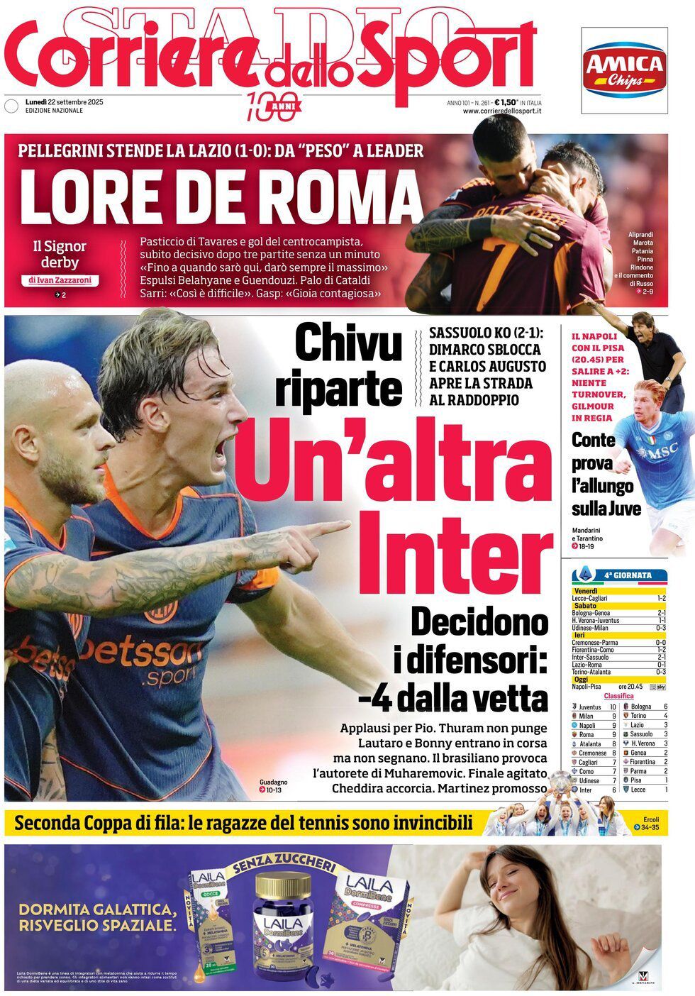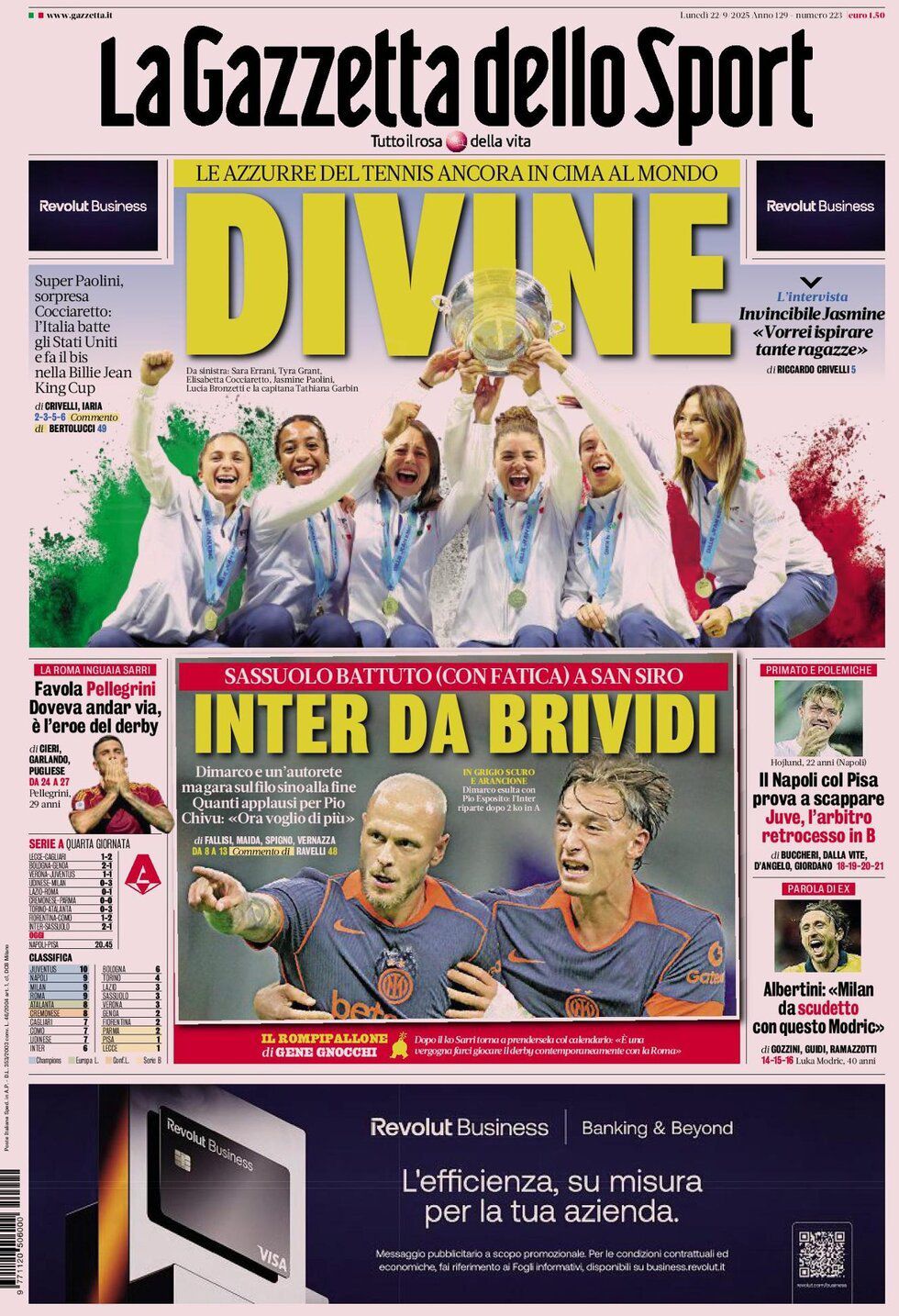 Le prime pagine sportive nazionali – 22 settembre 2025
