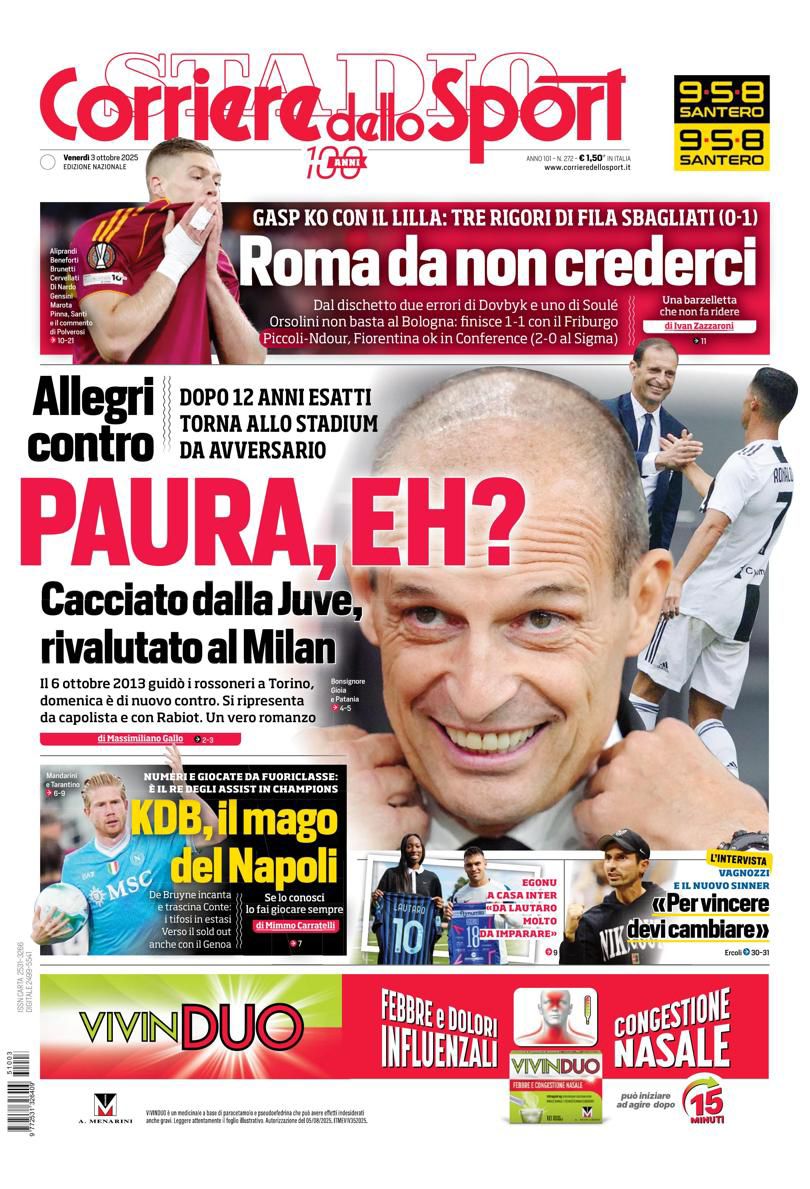 Le prime pagine sportive nazionali – 3 ottobre 2025
