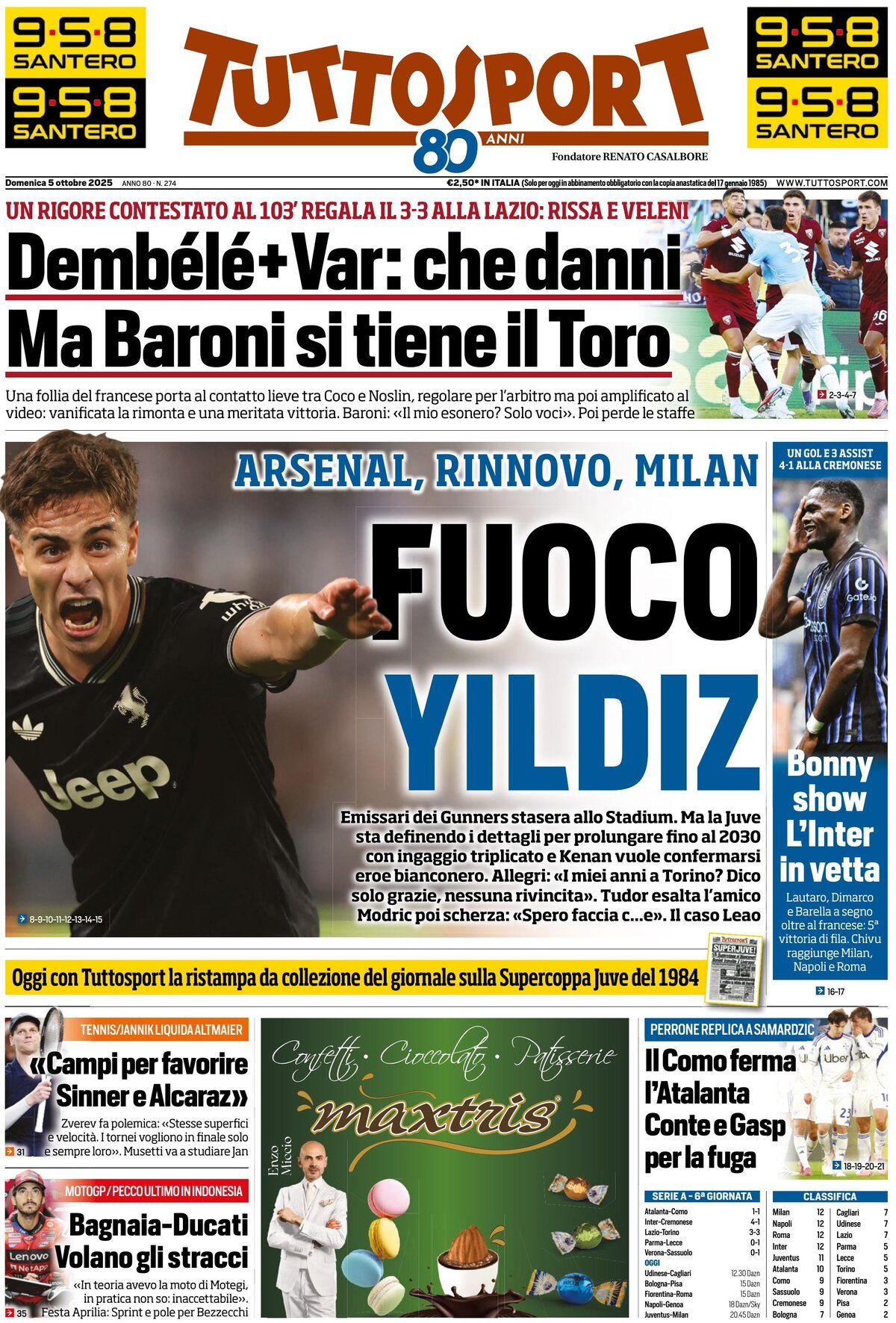 Le prime pagine sportive nazionali – 5 ottobre 2025