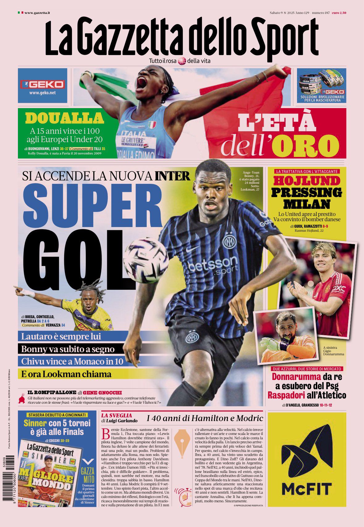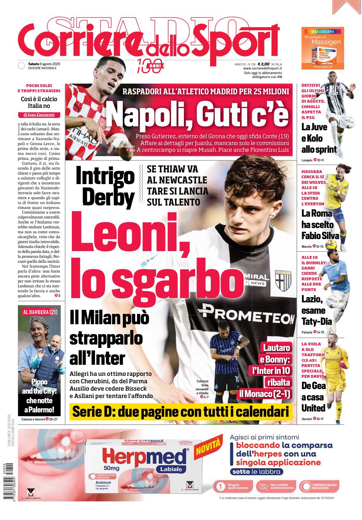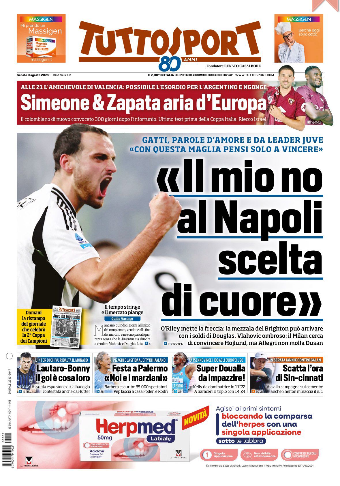 Le prime pagine sportive nazionali – 9 agosto