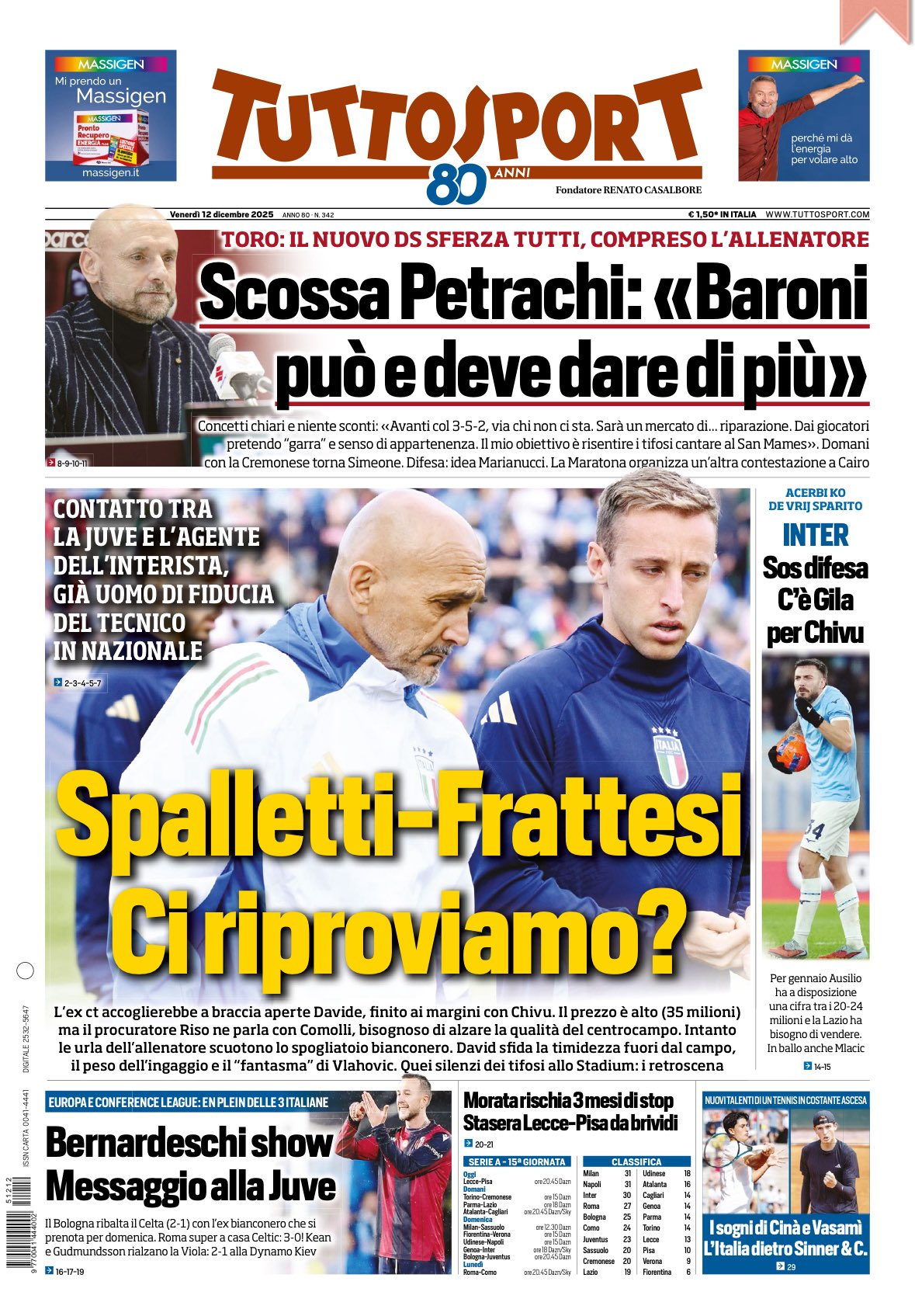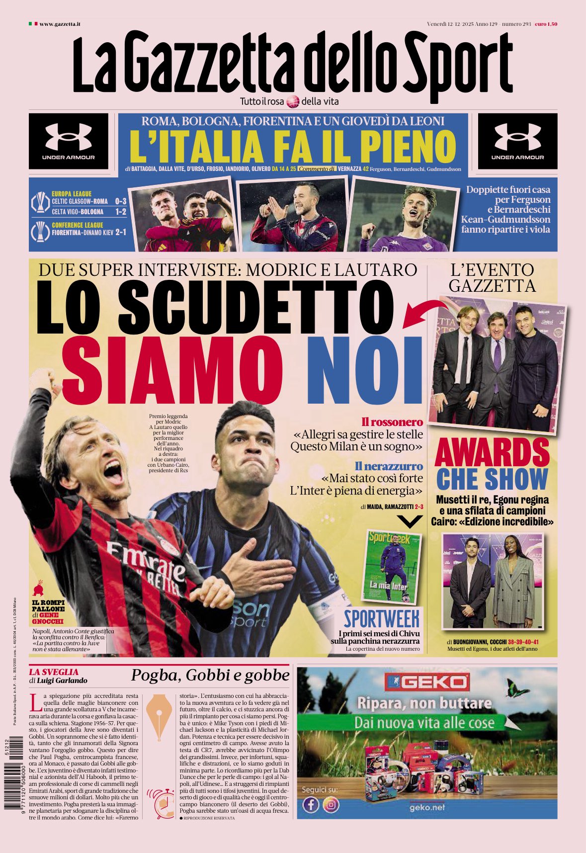 Le prime pagine sportive nazionali – 12 dicembre 2025