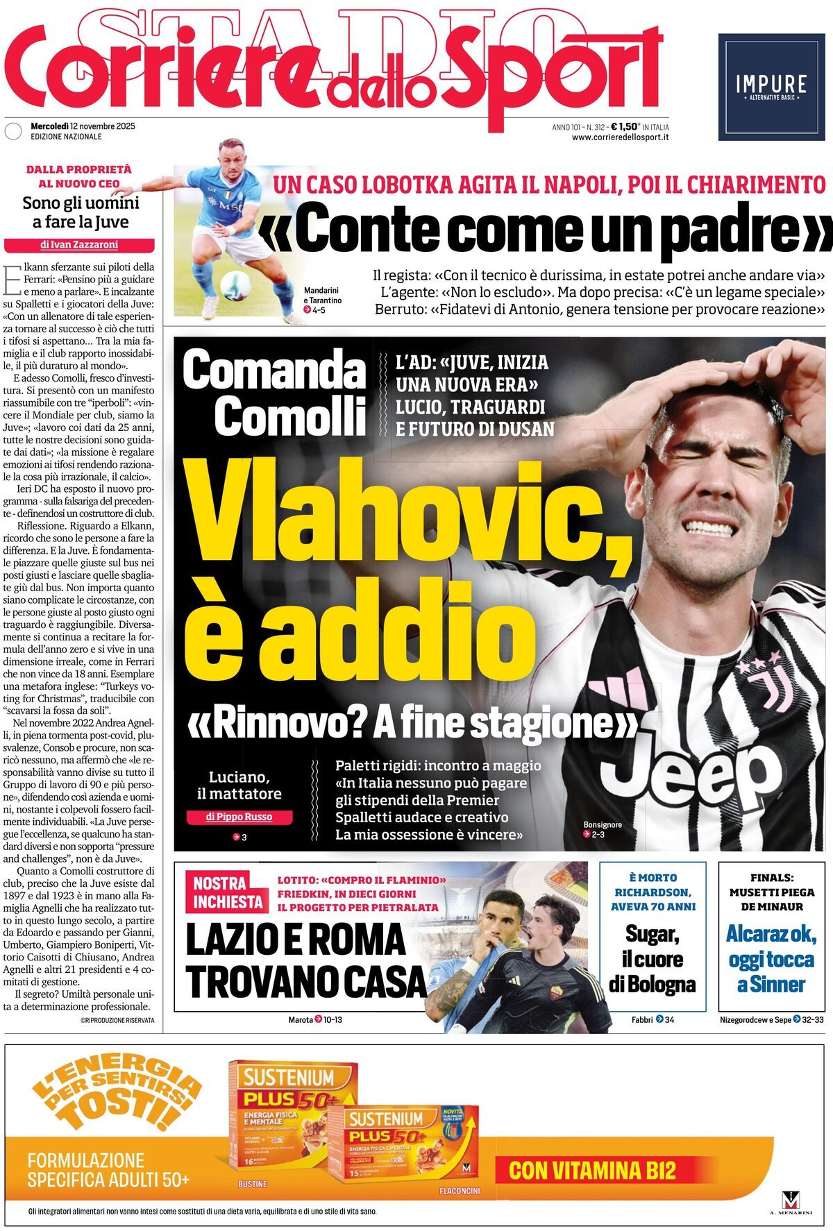 Le prime pagine sportive nazionali – 12 novembre 2025
