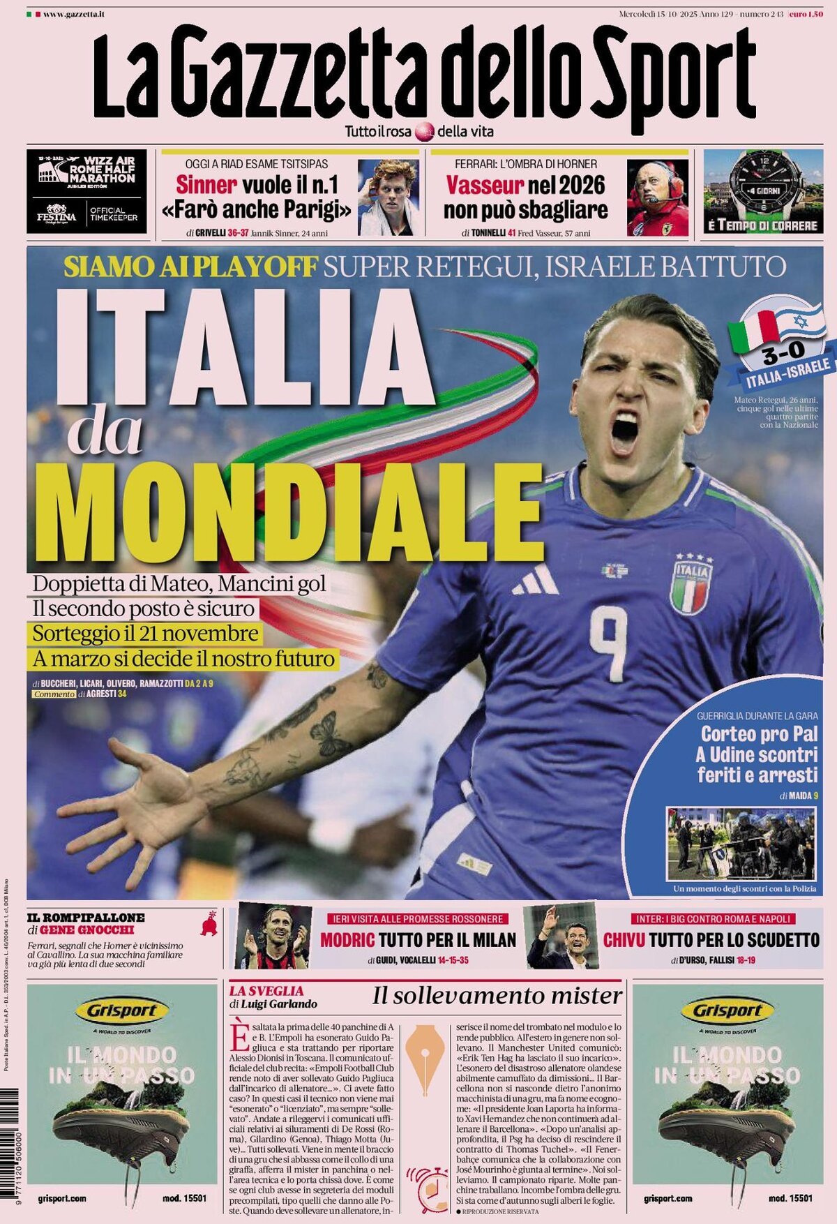Le prime pagine sportive nazionali – 15 ottobre 2025