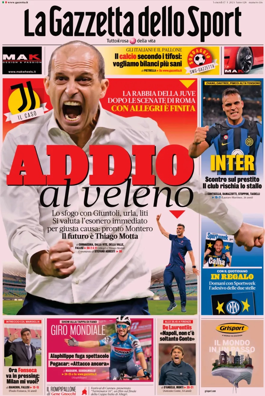 Le prime pagine dei quotidiani sportivi di oggi in edicola: Tuttosport, La Gazzetta dello Sport e Corriere dello Sport