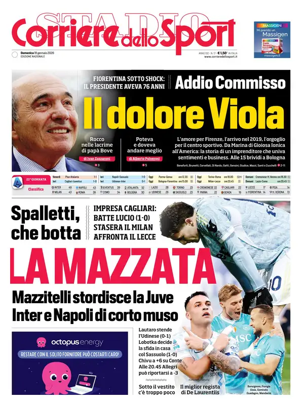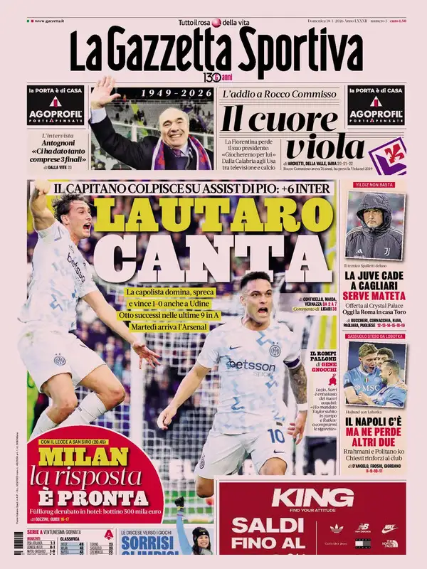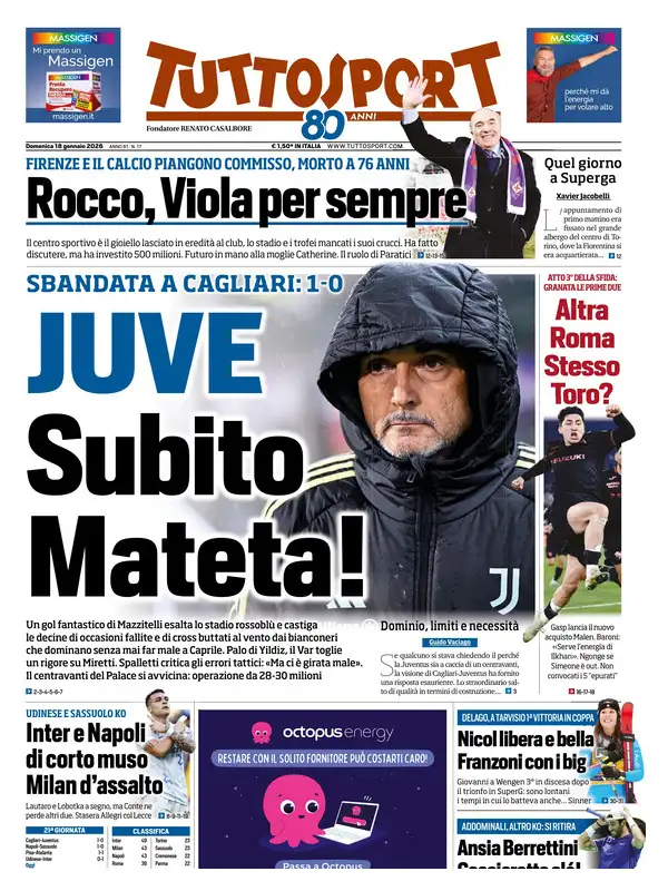 Le prime pagine dei quotidiani sportivi – 18 gennaio 2026