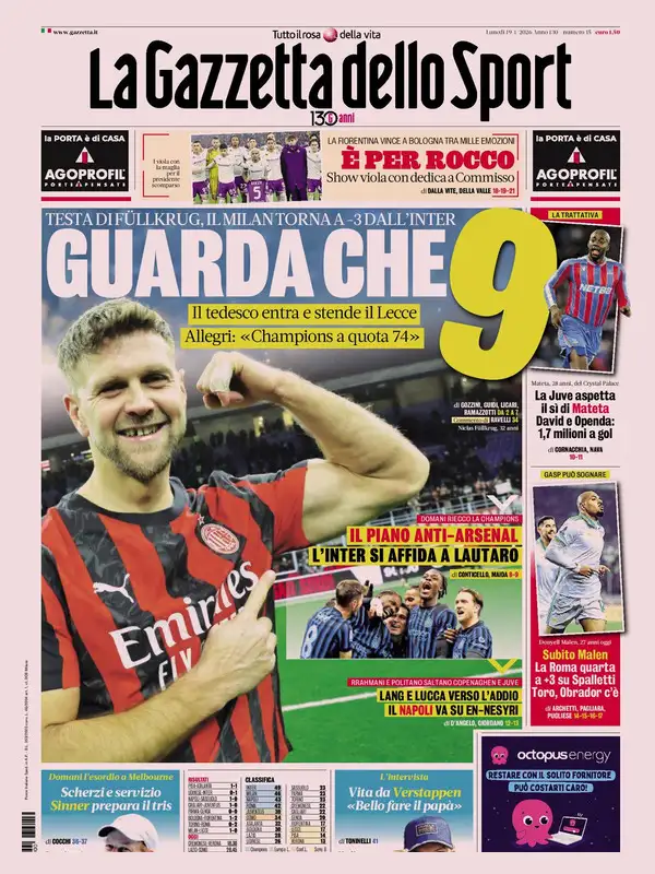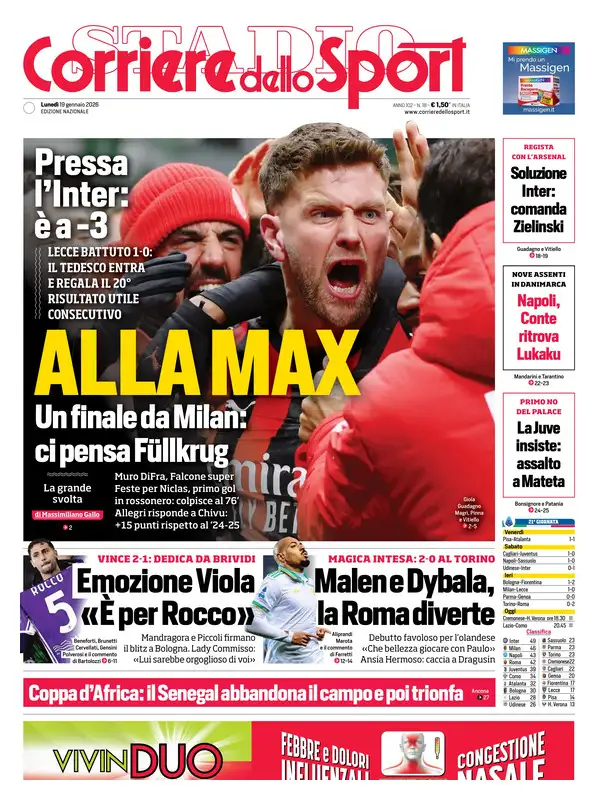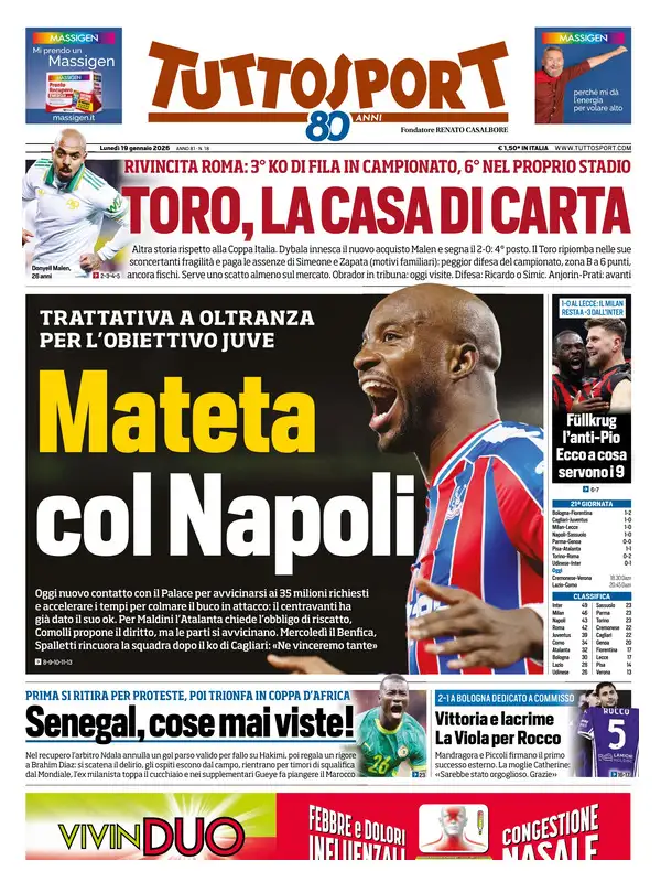 Le prime pagine dei quotidiani sportivi – 19 gennaio 2026