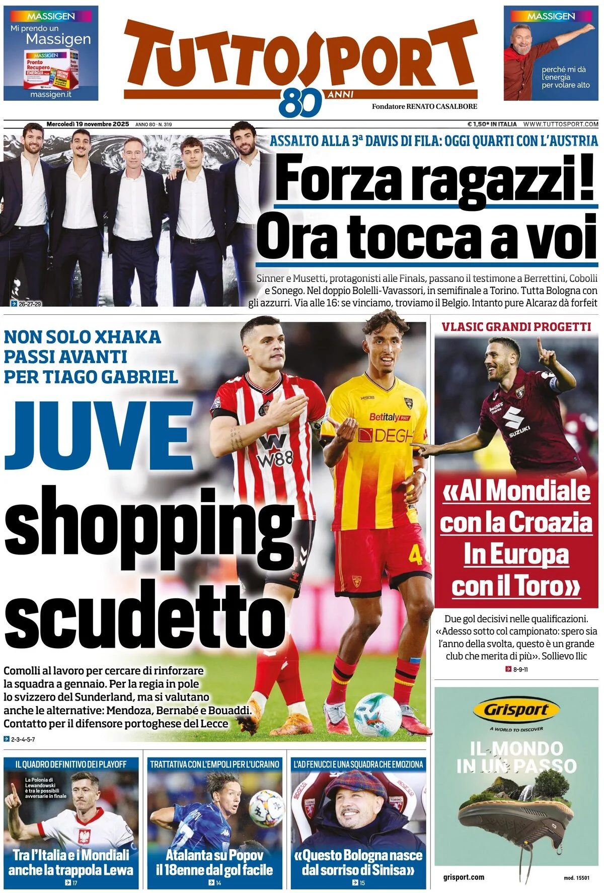 Le prime pagine sportive nazionali – 19 novembre 2025