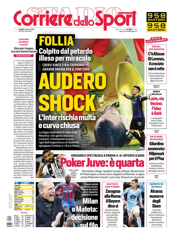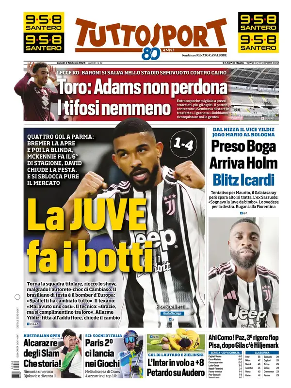 Le prime pagine dei quotidiani sportivi – 2 febbraio 2026