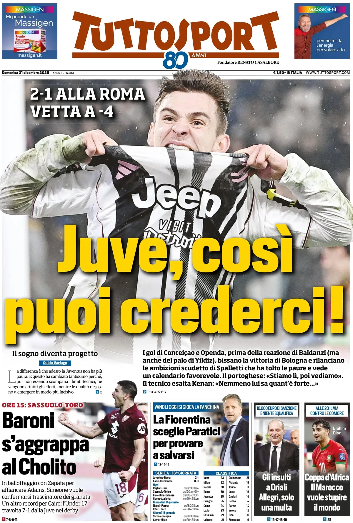 Le prime pagine sportive nazionali – 21 dicembre 2025