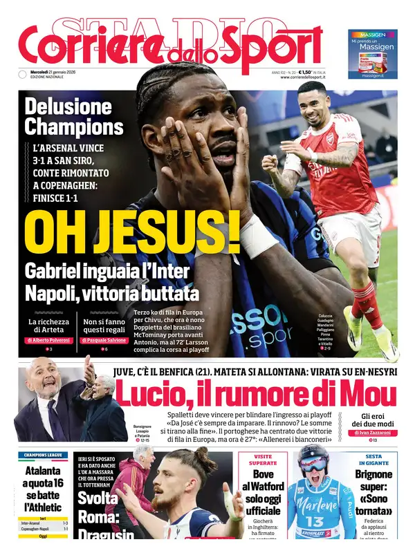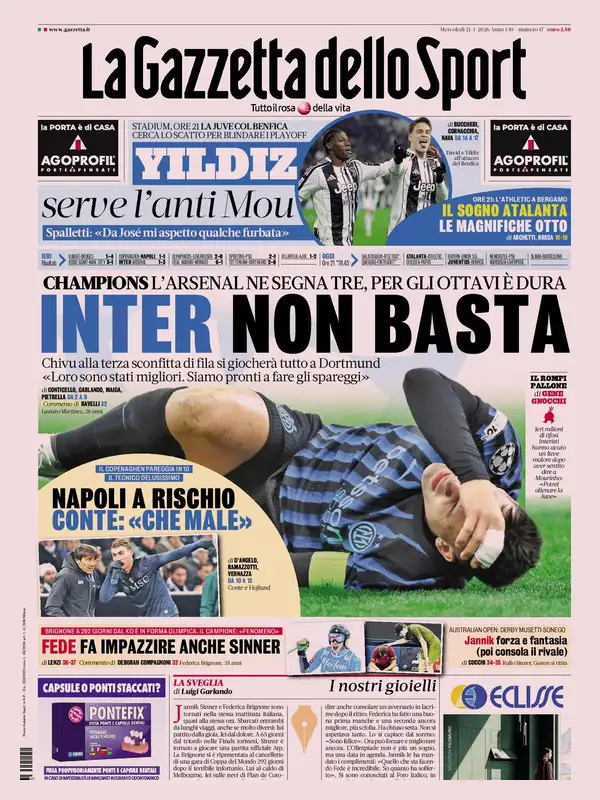 Le prime pagine dei quotidiani sportivi – 21 gennaio 2026