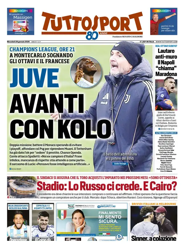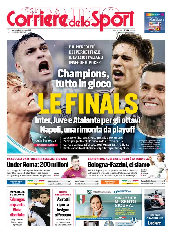 Le prime pagine dei quotidiani sportivi – 28 gennaio 2026