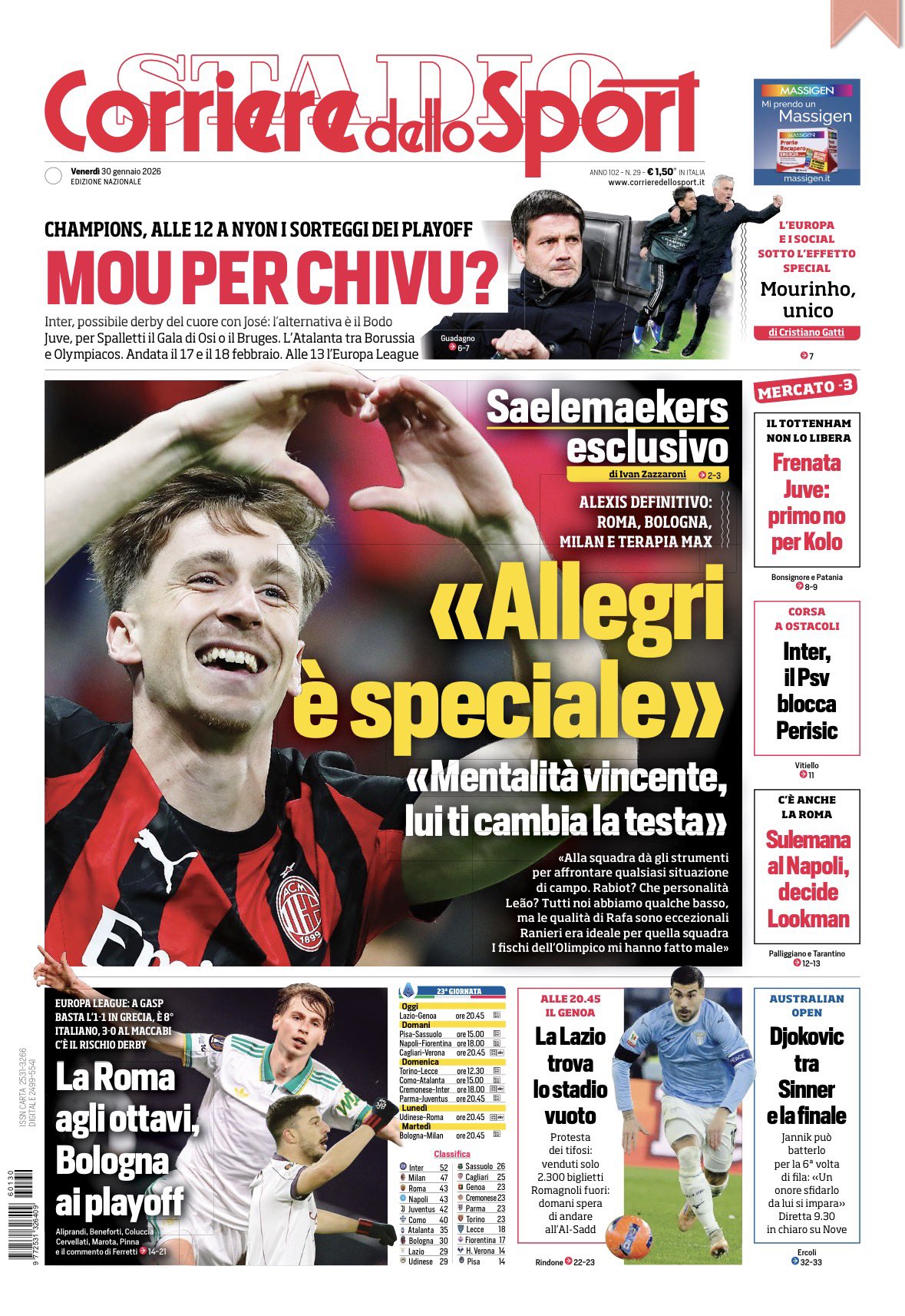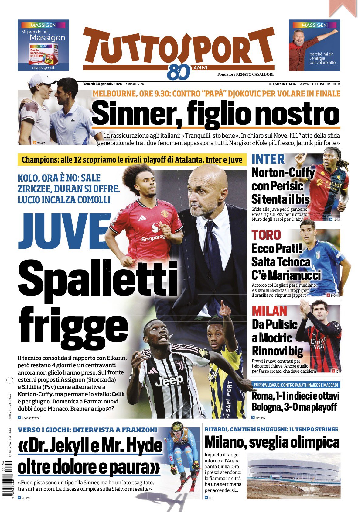 Le prime pagine dei quotidiani sportivi – 30 gennaio 2026