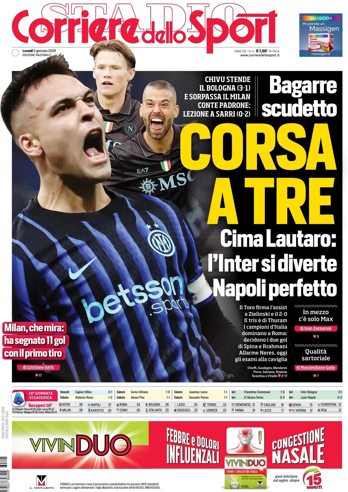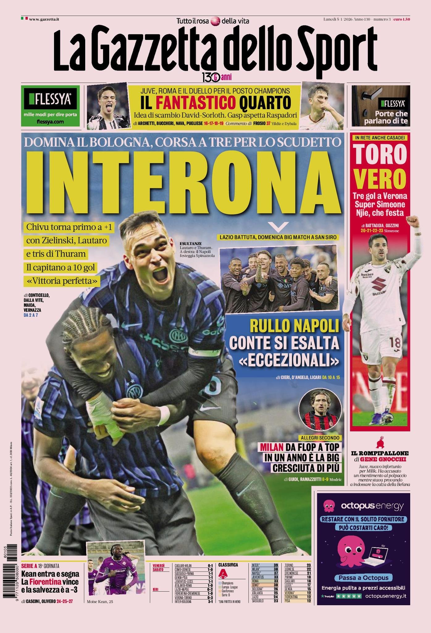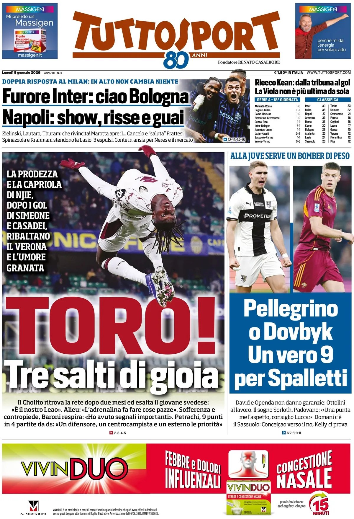 Le prime pagine dei quotidiani sportivi – 5 gennaio 2026