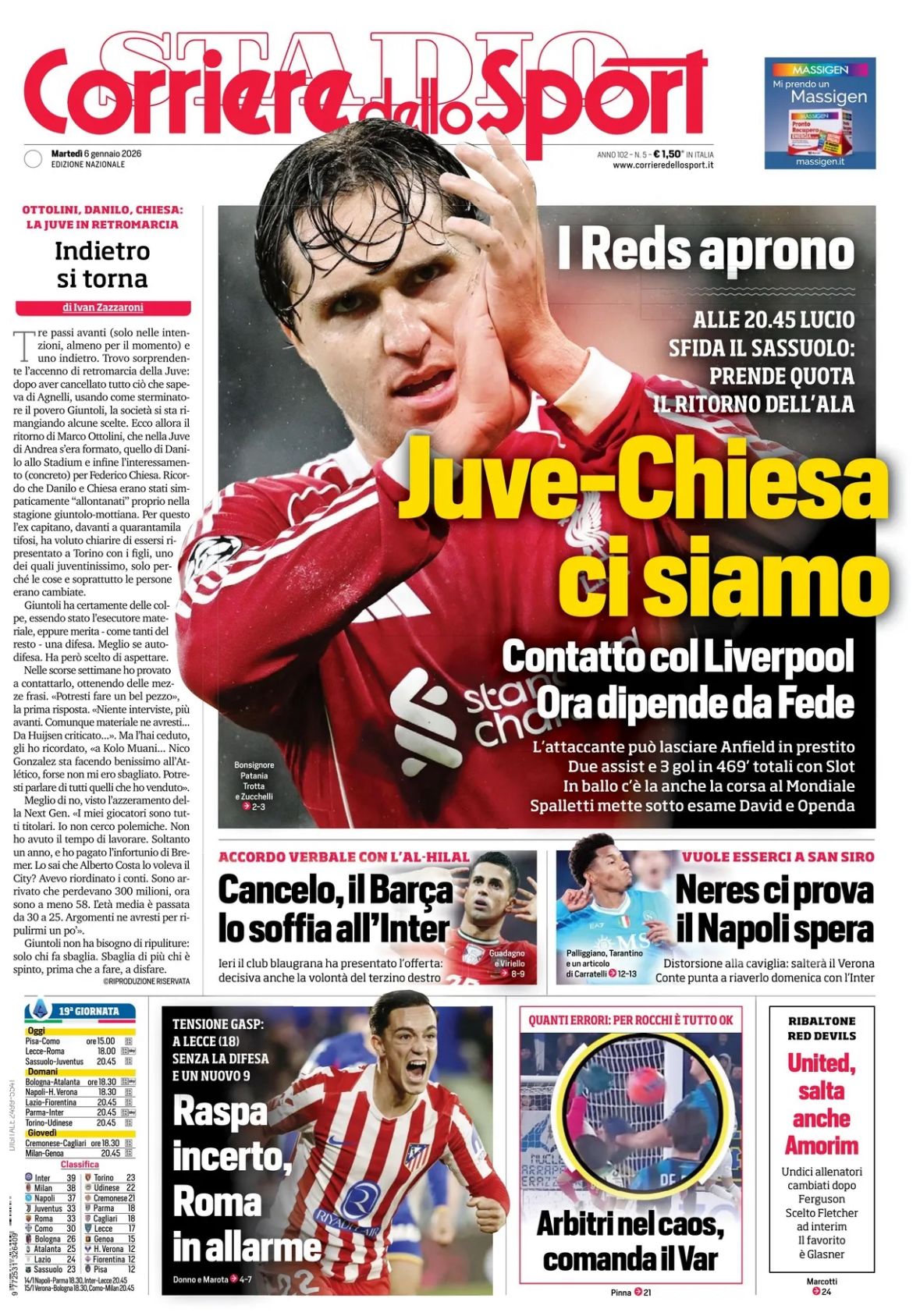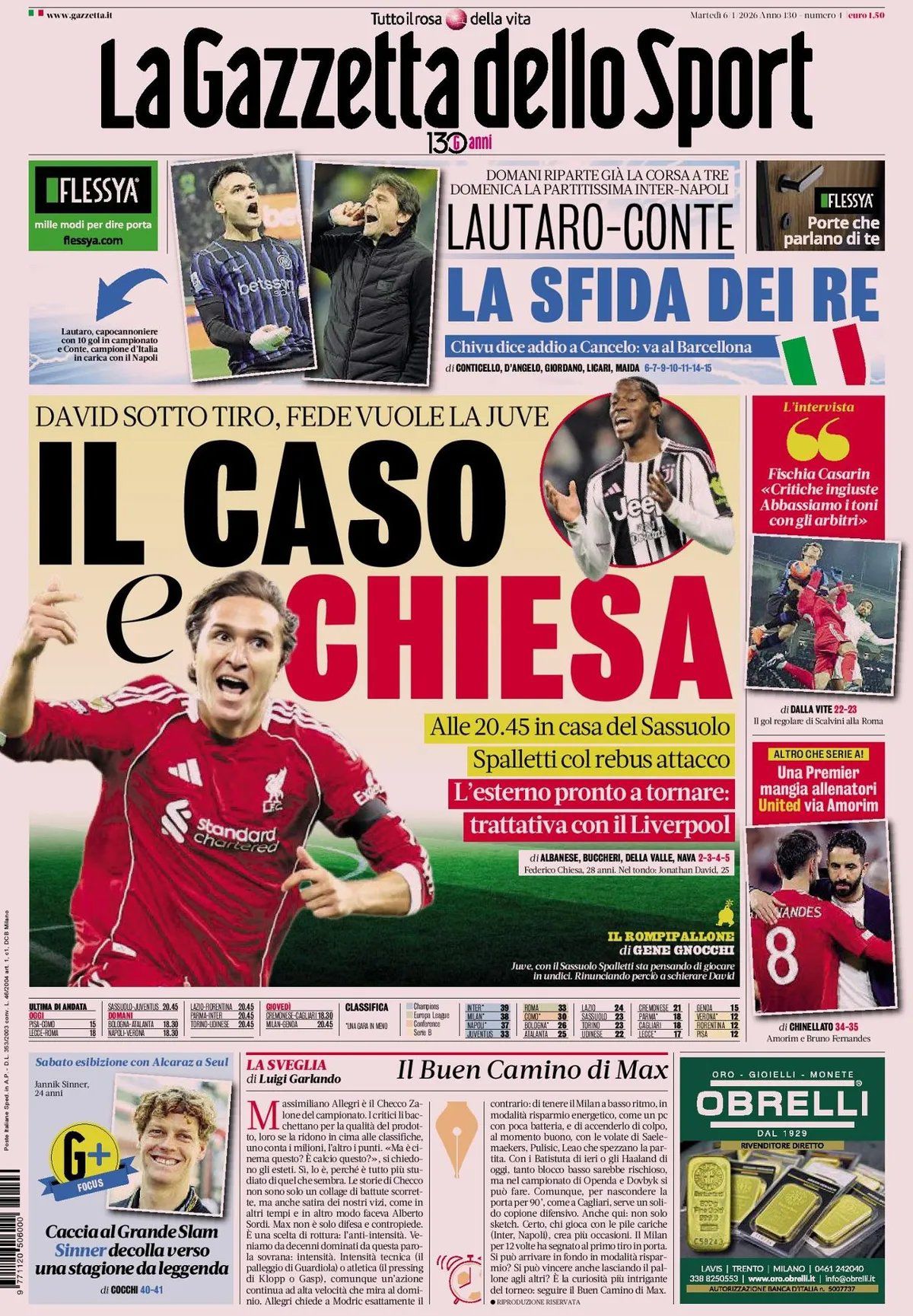 Le prime pagine dei quotidiani sportivi – 6 gennaio 2026