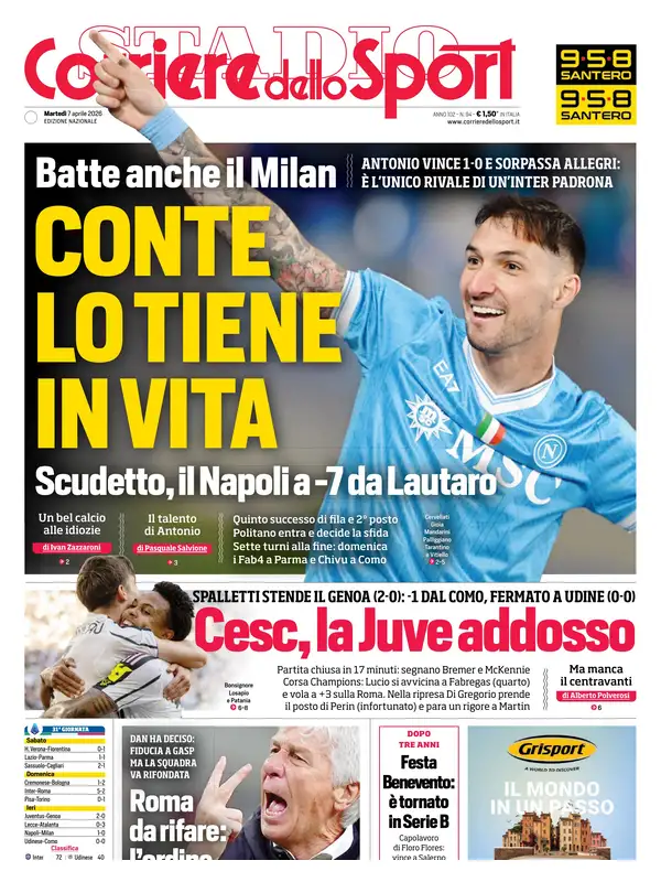 Le prime pagine dei quotidiani sportivi – 7 aprile 2026