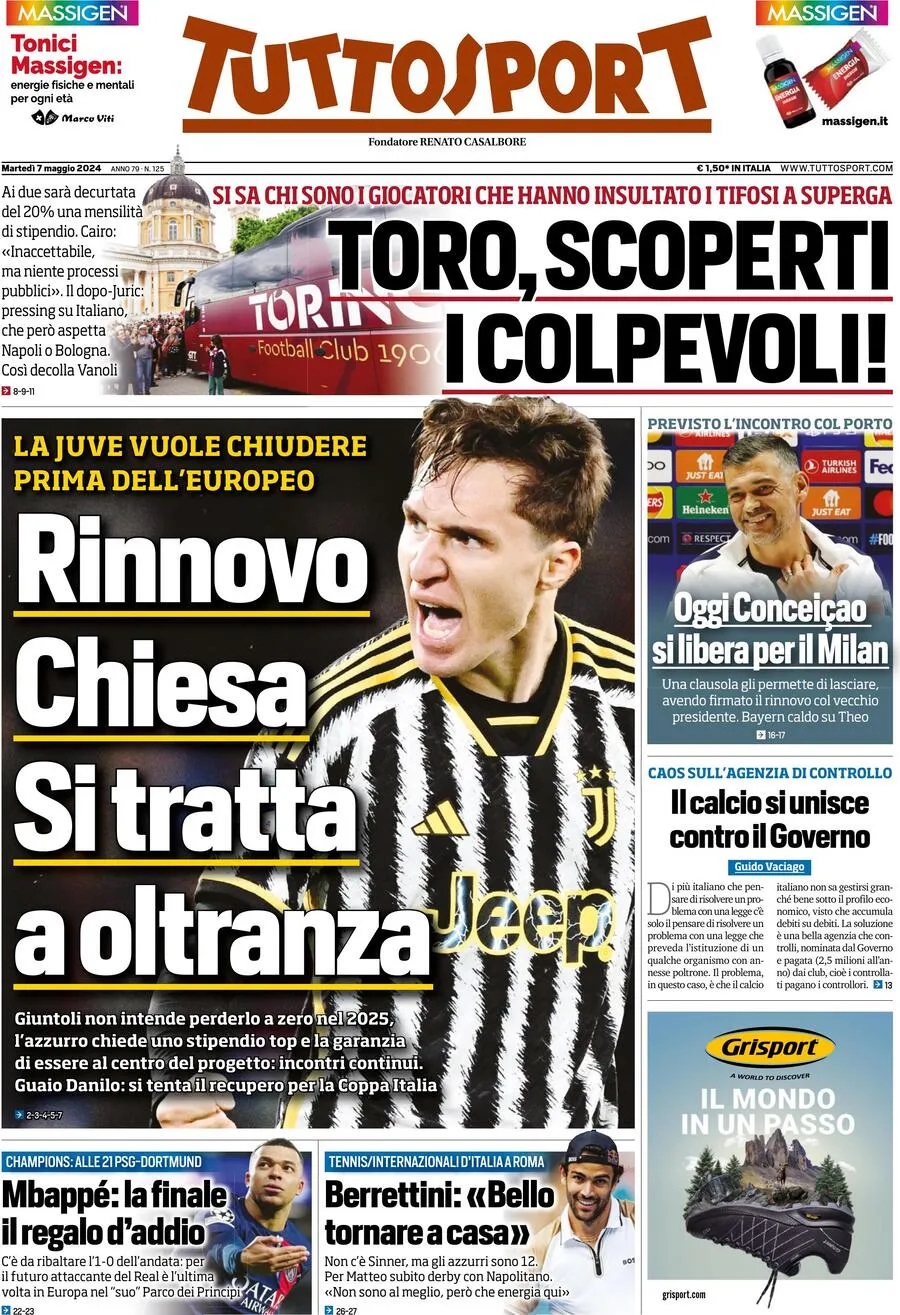 Le prime pagine dei quotidiani sportivi di oggi in edicola: Tuttosport, La Gazzetta dello Sport e Corriere dello Sport