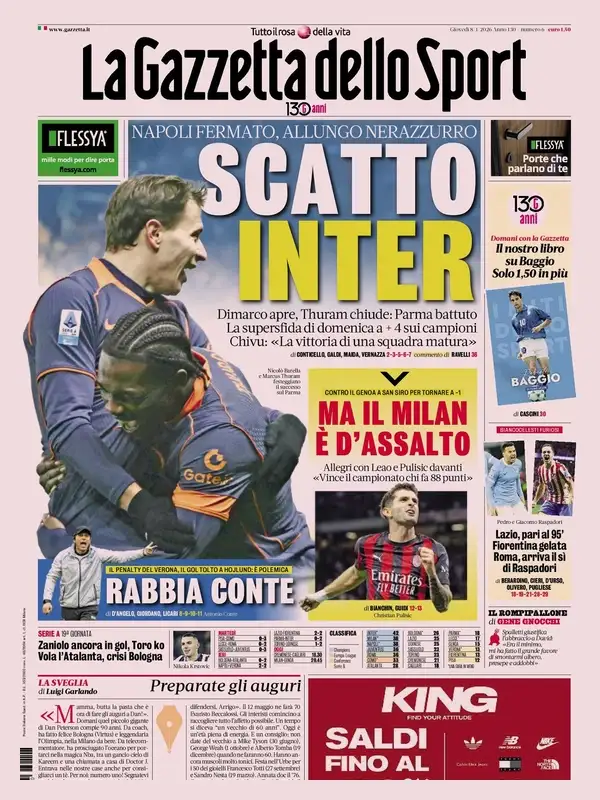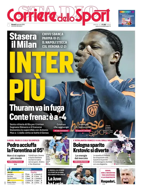 Le prime pagine dei quotidiani sportivi – 8 gennaio 2026