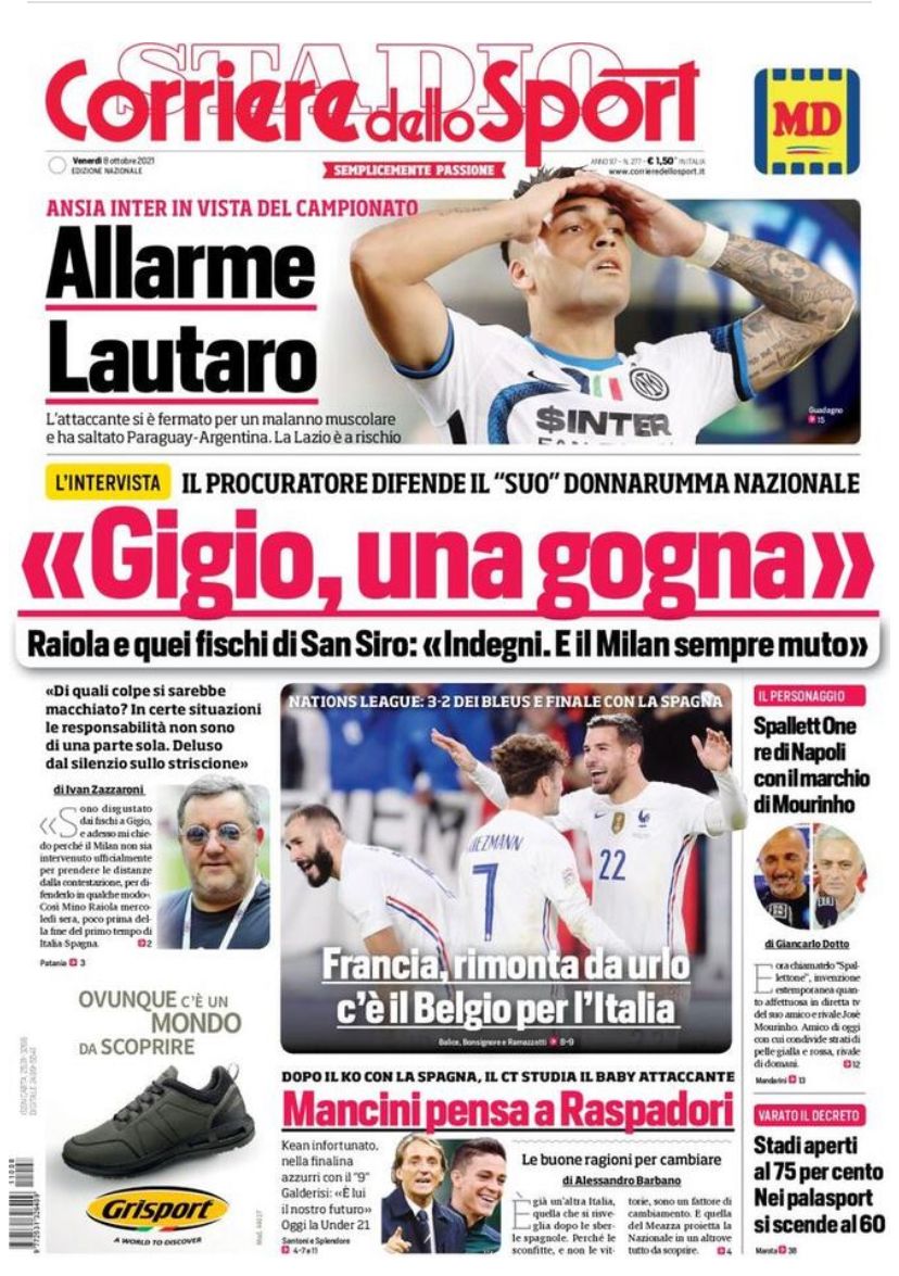 Le prime pagine dei quotidiani sportivi di oggi – 8 ottobre