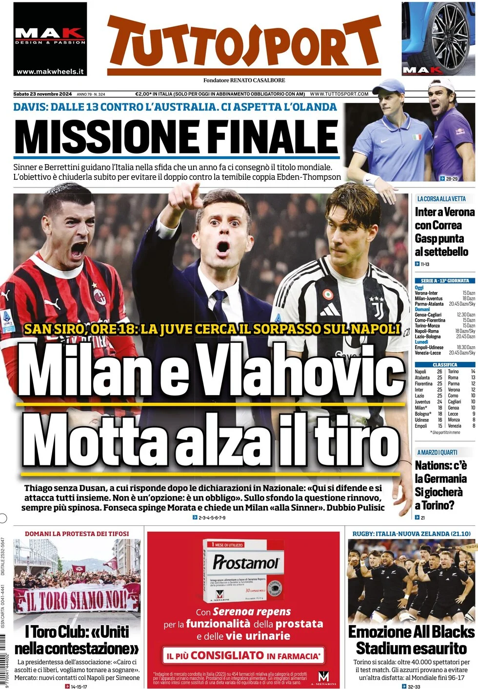 Le prime pagine dei quotidiani sportivi di oggi in edicola: Tuttosport, Corriere dello Sport e La Gazzetta dello Sport. I dettagli