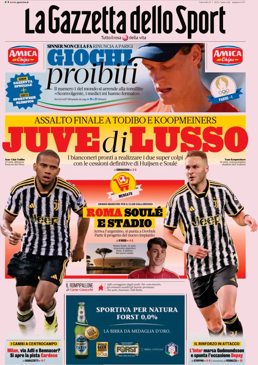 Le prime pagine sportive nazionali – 25 luglio - Calcio News 24