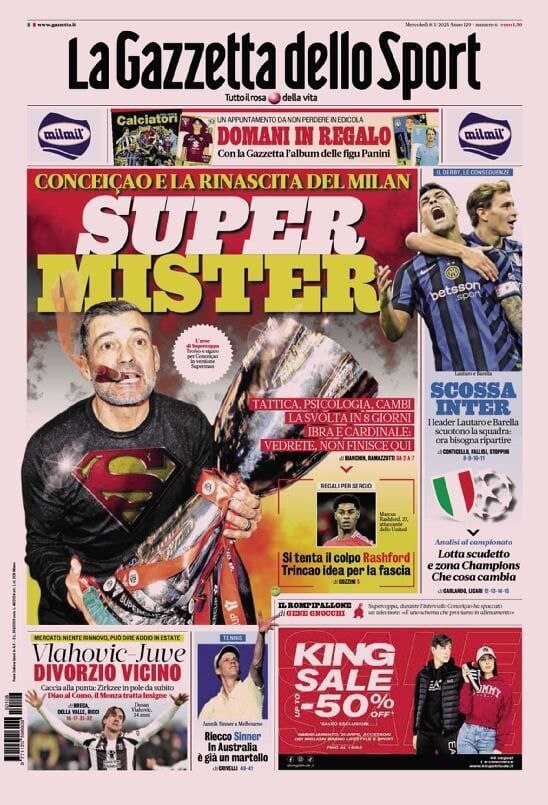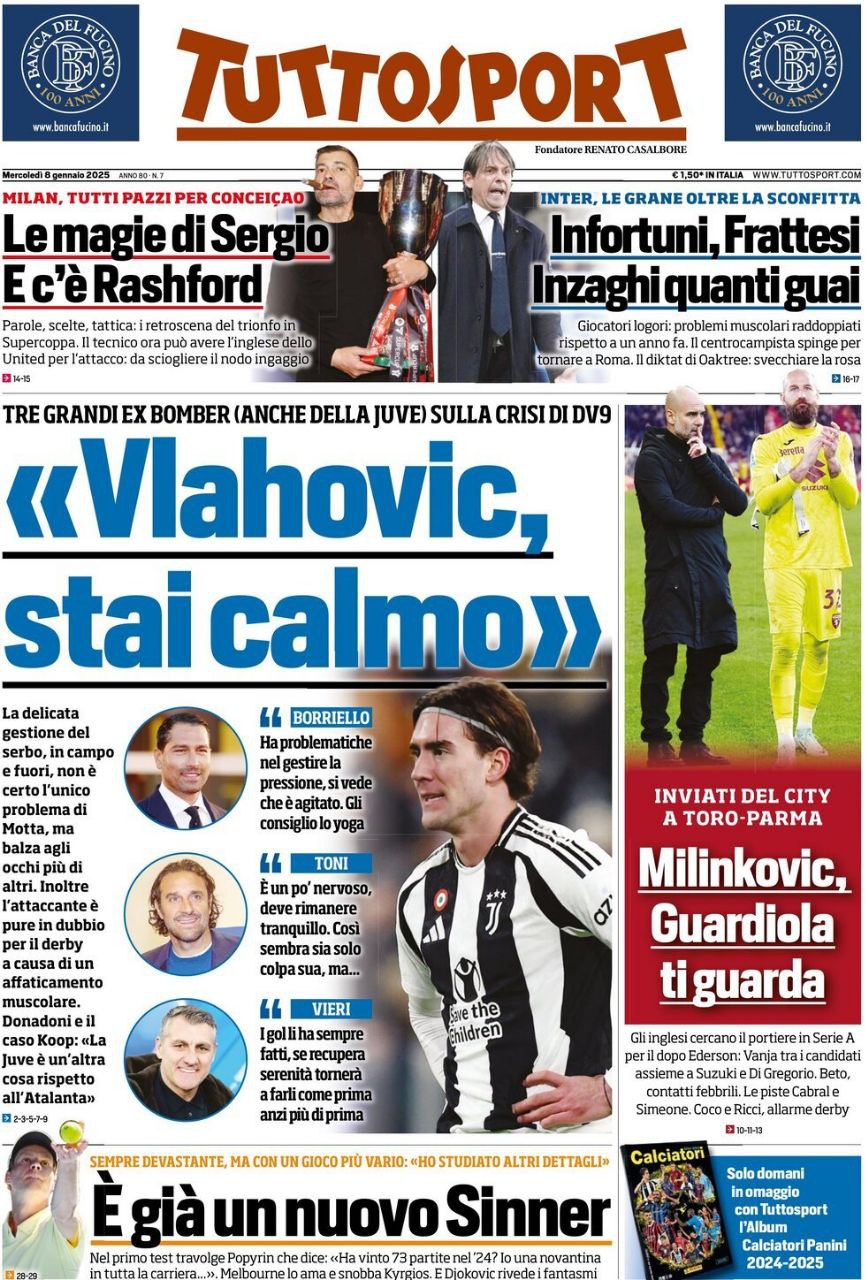 Le prime pagine sportive nazionali – 8 gennaio