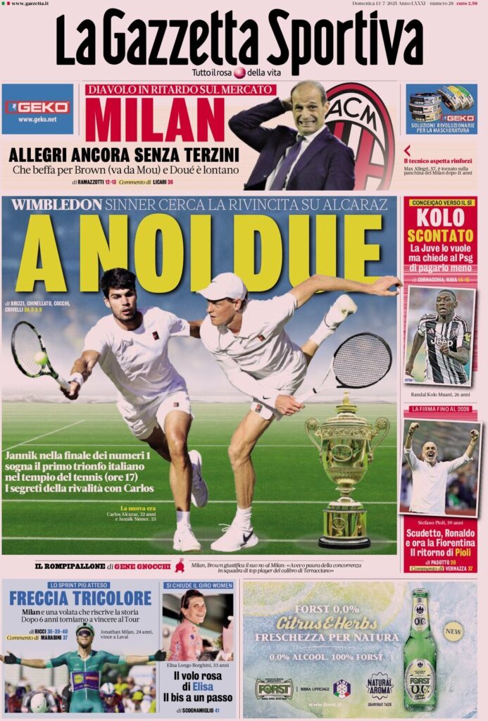 Le prime pagine dei quotidiani sportivi di oggi in edicola: Tuttosport, Corriere dello Sport e La Gazzetta dello Sport. I dettagli