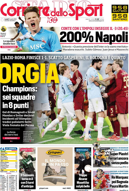 Sono decine di migliaia le copie vendute tutte le mattine in edicola, ma un’anteprima dei principali contenuti può essere consultata già dalla sera precedente. Ecco, allora, le prime pagine dei Quotidiani Sportivi di oggi in edicola. Tuttosport, Corriere dello Sport e La Gazzetta dello Sport rappresentano i principali quotidiani sportivi in Italia. Punto di riferimento ogni giorno tanto per gli addetti ai lavori quanto per gli appassionati.