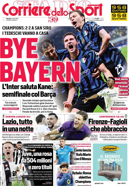 Le prime pagine sportive nazionali – 17 aprile