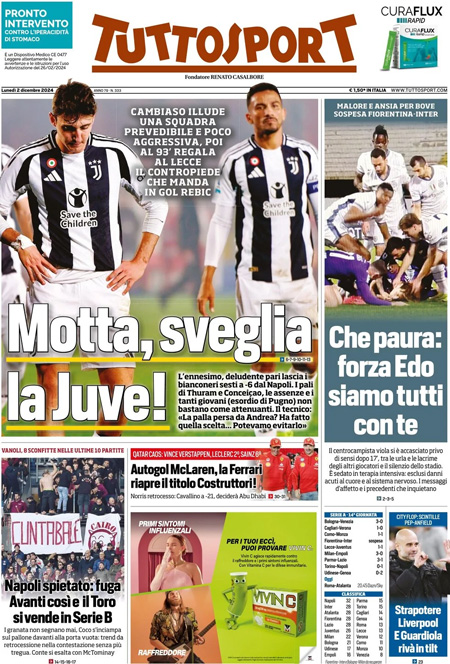 Le prime pagine sportive nazionali – 2 dicembre