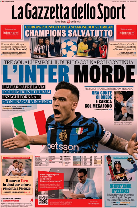 Le prime pagine dei quotidiani sportivi di oggi in edicola: Tuttosport, Corriere dello Sport e La Gazzetta dello Sport. I dettagli