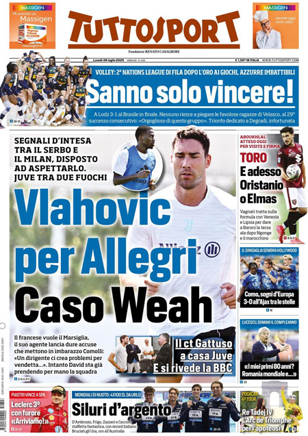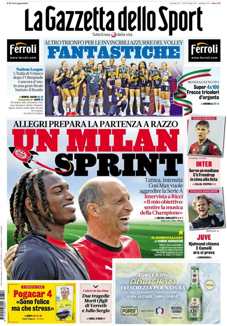 Le prime pagine sportive nazionali – 28 luglio