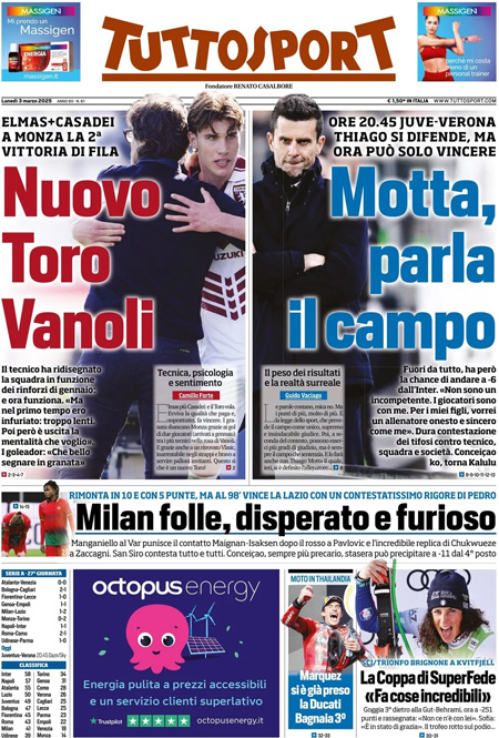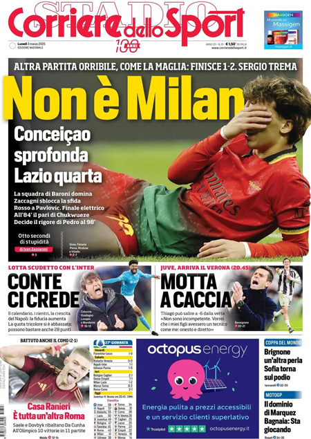 Le prime pagine sportive nazionali – 3 marzo