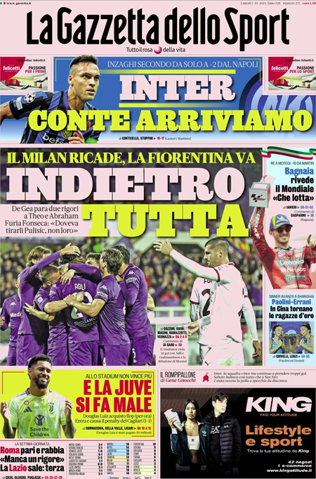Le prime pagine dei quotidiani sportivi di oggi in edicola: Tuttosport, Corriere dello Sport e La Gazzetta dello Sport