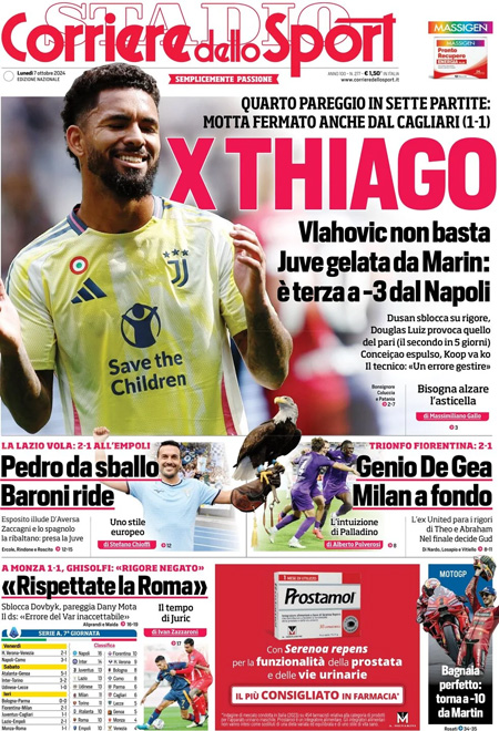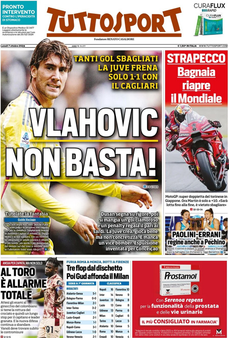 Le PRIME PAGINE SPORTIVE nazionali – 7 ottobre