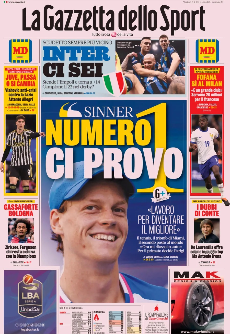 Le prime pagine dei quotidiani sportivi di oggi in edicola: Tuttosport, Gazzetta dello Sport e Corriere dello Sport